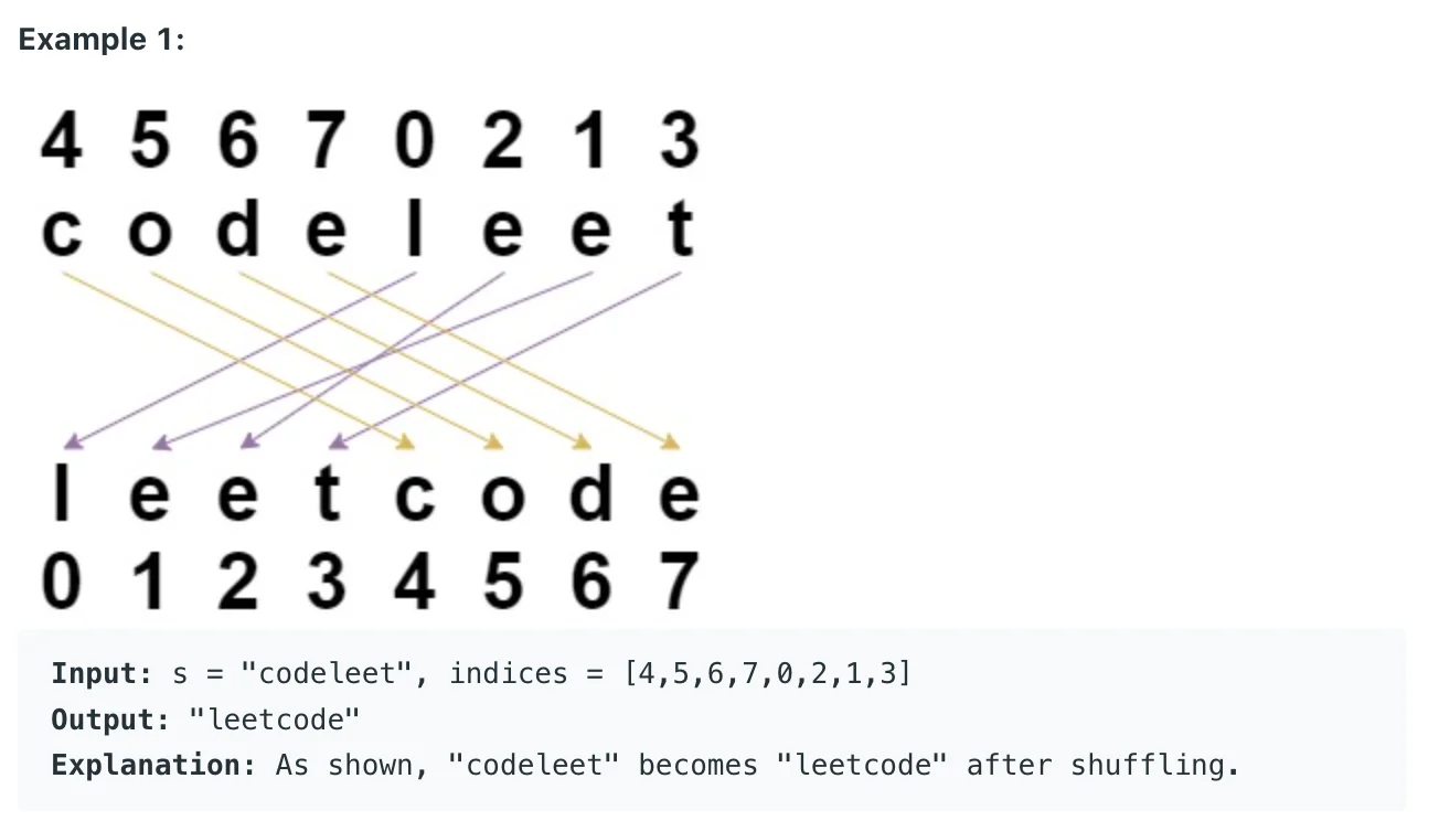 ⭐️ 임의의 자료구조를 만들고 indices에 있는 인덱스 순서대로 문자열을 넣어주면 되겠다는 생각이 들었다.