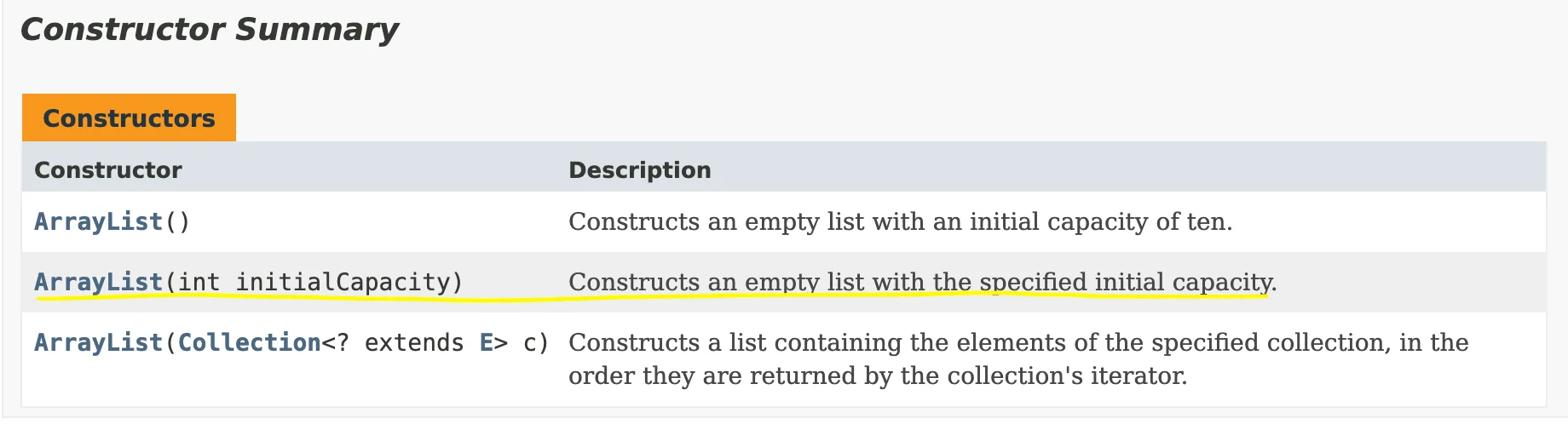 new ArrayList(10) doesn't create an ArrayList whose size is 10. It creates an empty ArrayList whose initial capacity is 10.
